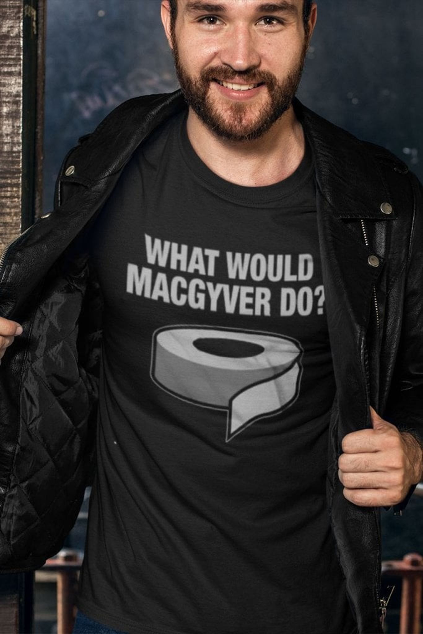 Bomulden af høj kvalitet og den klassiske pasform gør denne T-shirt både behagelig og stilfuld, perfekt til alle lejligheder. Uanset om du skal reparere en ødelagt bil eller redde verden, vil denne T-shirt give dig den styrke og kreativitet, du har brug for - ligesom MacGyver selv!