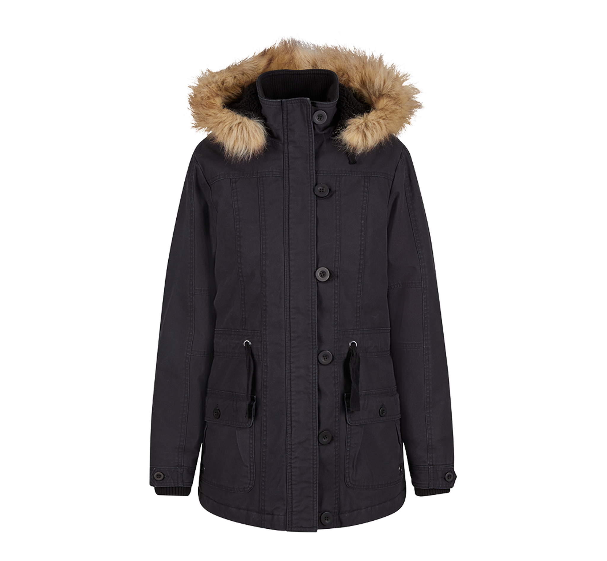 - Material: Shell: 100% cotton / Lining: 100% polyester / Faux fur: 100% acrylic / Padding: 100% polyester / Rib: 75% acrylic, 25% polyester