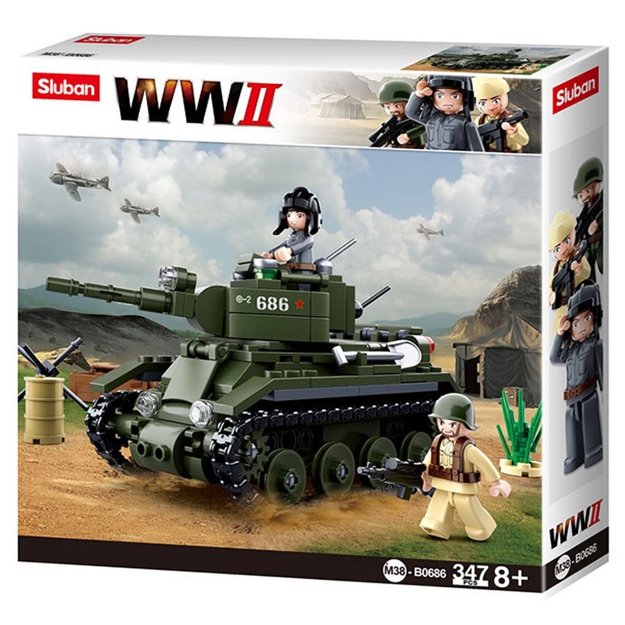 Oplev historiske kampe med Sluban WWII Tank M38-B0686, et byggesæt, der hører til Slubans populære samling baseret på Anden Verdenskrig. Denne model er designet til både unge bygherrer og samlere med interesse for militærhistorie.