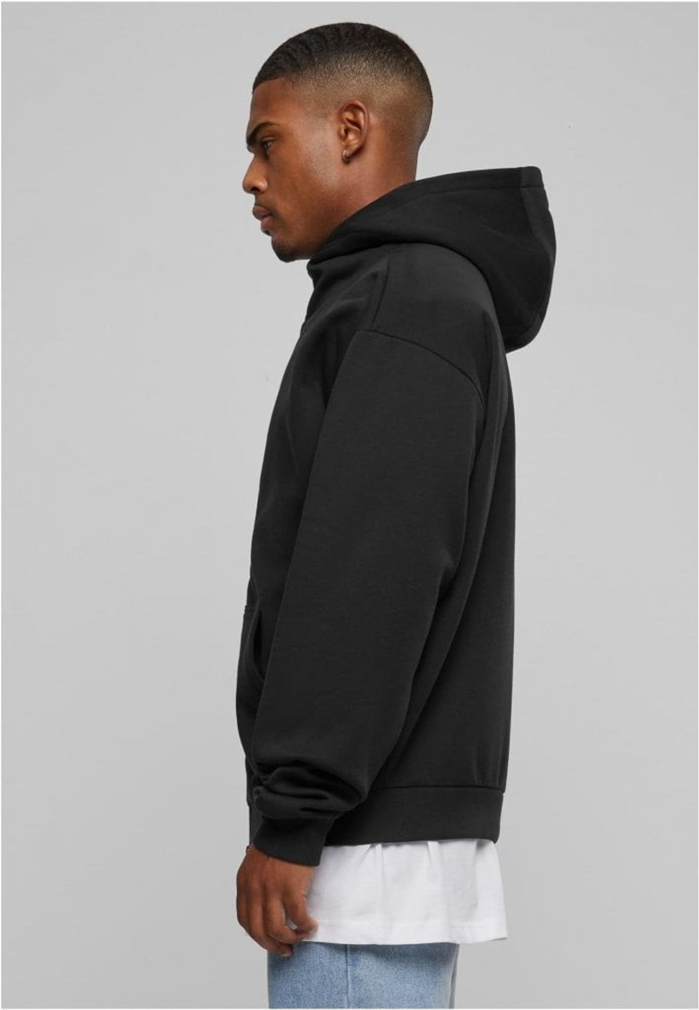 Denne herresweater har klassiske funktioner såsom hætte, kængurulomme og brede manchetter og kant. En speciel detalje er den let forkortede krave, mens oversize pasformen med faldende skuldre giver masser af bevægelsesfrihed. Det anvendte børstede fleecefor er behageligt og behageligt at have på.